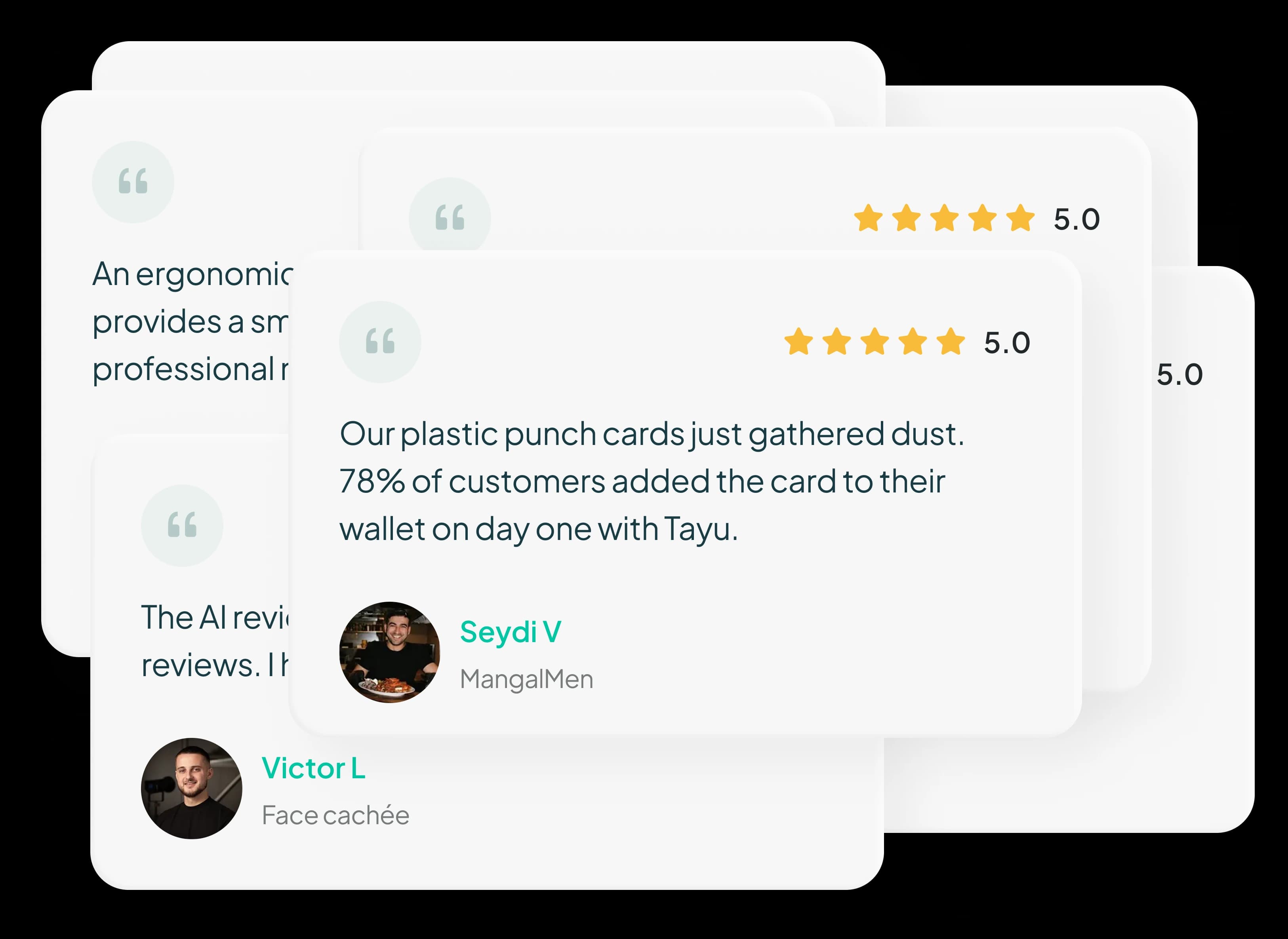 Tayu helps you build stronger customer relationships that lead to more repeated visits and better reviews.